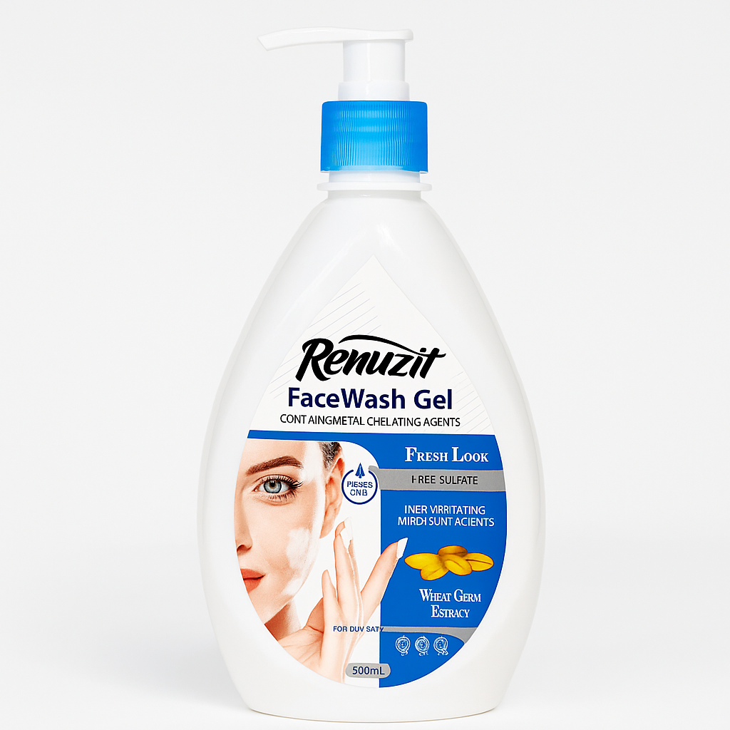 ژل شستشوی صورت رینوزیت مخصوص پوست چرب، با عصاره جوانه گندم، فاقد سولفات و پارابن، پاککننده عمقی و لطیف بدون ایجاد خشکی – مناسب استفاده روزانه.